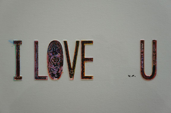 キャンバスの上に、I LOVE Uという文字を切り抜いたアクリル板を付けた作品を数点展示し、訪れた観客に色を加えることを促し、I LOVE Uの文字を可視化させた。